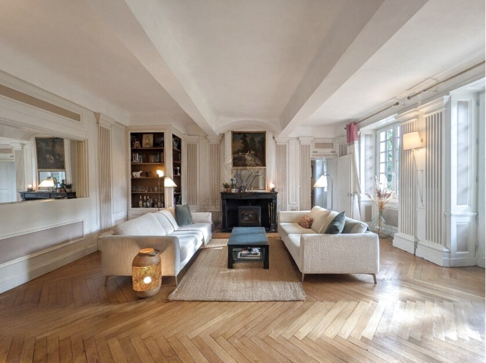 Dès l’entrée, un hall majestueux de 25 m² avec vestibule et escalier en bois massif donne le ton. Sur l'aile droite, une suite de 30 m² avec plafond à la française, parquet en pointe de Hongrie, deux placards, cheminée et rafraîchissoir du XVIIIe siècle évoque toute l’élégance de cette demeure. Une salle d’eau avec douche, lavabo et toilettes complète cet espace. Sur l'aile gauche, une enfilade composée d’un salon avec cheminée et boiseries murales, d’une salle à manger et d’une cuisine. Ces deux dernières pièces s’ouvrent sur un couloir de service doté de rangements, d’un accès à la cave à vin et d’une sortie indépendante sur la rue. L’ensemble du rez-de-chaussée représente 161 m² Carrez et offre de magnifiques volumes avec une hauteur sous plafond de trois mètres.